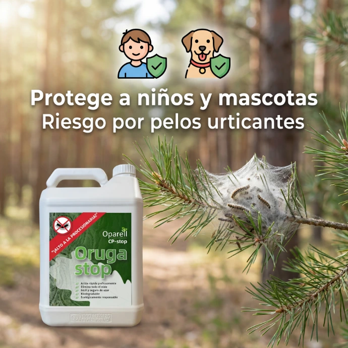 ⏳ Temporada activa: actúa antes de que bajen del árbol (evita irritaciones en niños y mascotas).
